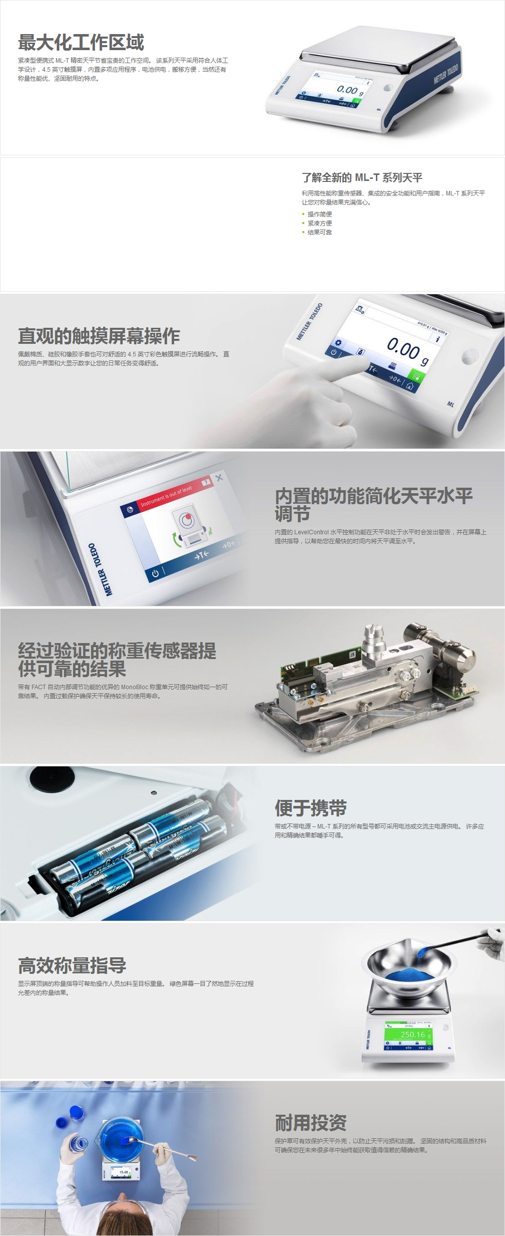 緊湊型便攜式 ML-T 精密天平節(jié)省寶貴的工作空間。 該系列天平采用符合人體工學(xué)設(shè)計(jì),4.5 英寸觸摸屏,內(nèi)置多項(xiàng)應(yīng)用程序,電池供電,搬移方便,當(dāng)然還有稱量性能優(yōu)、堅(jiān)固耐用的特點(diǎn)。