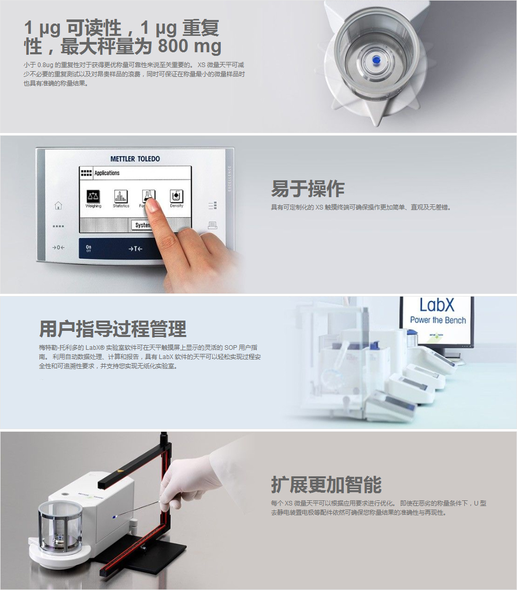 小于 0.8ug 的重復(fù)性對于獲得更優(yōu)稱量可靠性來說至關(guān)重要的。 XS 微量天平可減少不必要的重復(fù)測試以及對昂貴樣品的浪費,同時可保證在稱量最小的微量樣品時也具有準確的稱量結(jié)果。