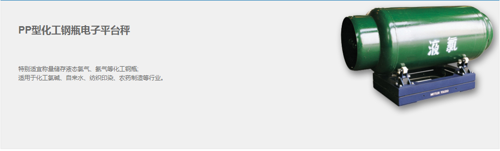 特別適宜稱量儲存液態(tài)氯氣、氨氣等化工鋼瓶; 適用于化工氯堿、自來水、紡織印染、農(nóng)藥制造等行業(yè)。