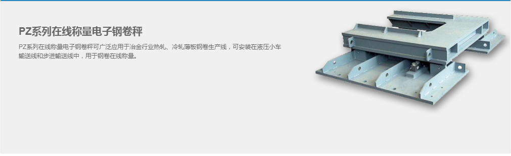 PZ系列在線稱量電子鋼卷秤可廣泛應用于冶金行業(yè)熱軋、冷軋薄板鋼卷生產(chǎn)線,可安裝在液壓小車輸送線和步進輸送線中,用于鋼卷在線稱量。