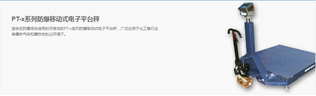 適合在防爆場(chǎng)合使用的可移動(dòng)的PT-x系列防爆移動(dòng)式電子平臺(tái)秤,廣泛應(yīng)用于化工等行業(yè)有爆炸氣體和爆炸性粉塵環(huán)境下。