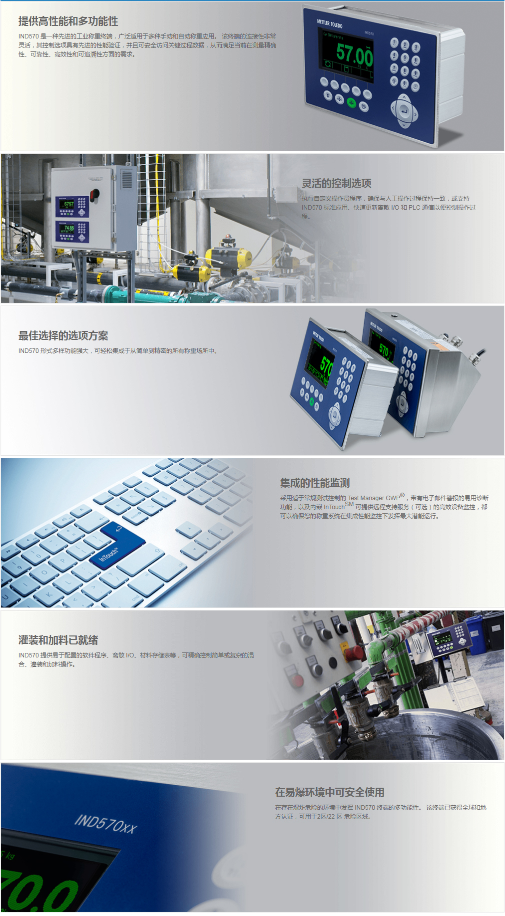 IND570 是一種先進的工業(yè)稱重終端,廣泛適用于多種手動和自動稱重應用。 該終端的連接性非常靈活,其控制選項具有先進的性能驗證,并且可安全訪問關鍵過程數(shù)據(jù),從而滿足當前在測量精確性、可靠性、高效性和可追溯性方面的需求。