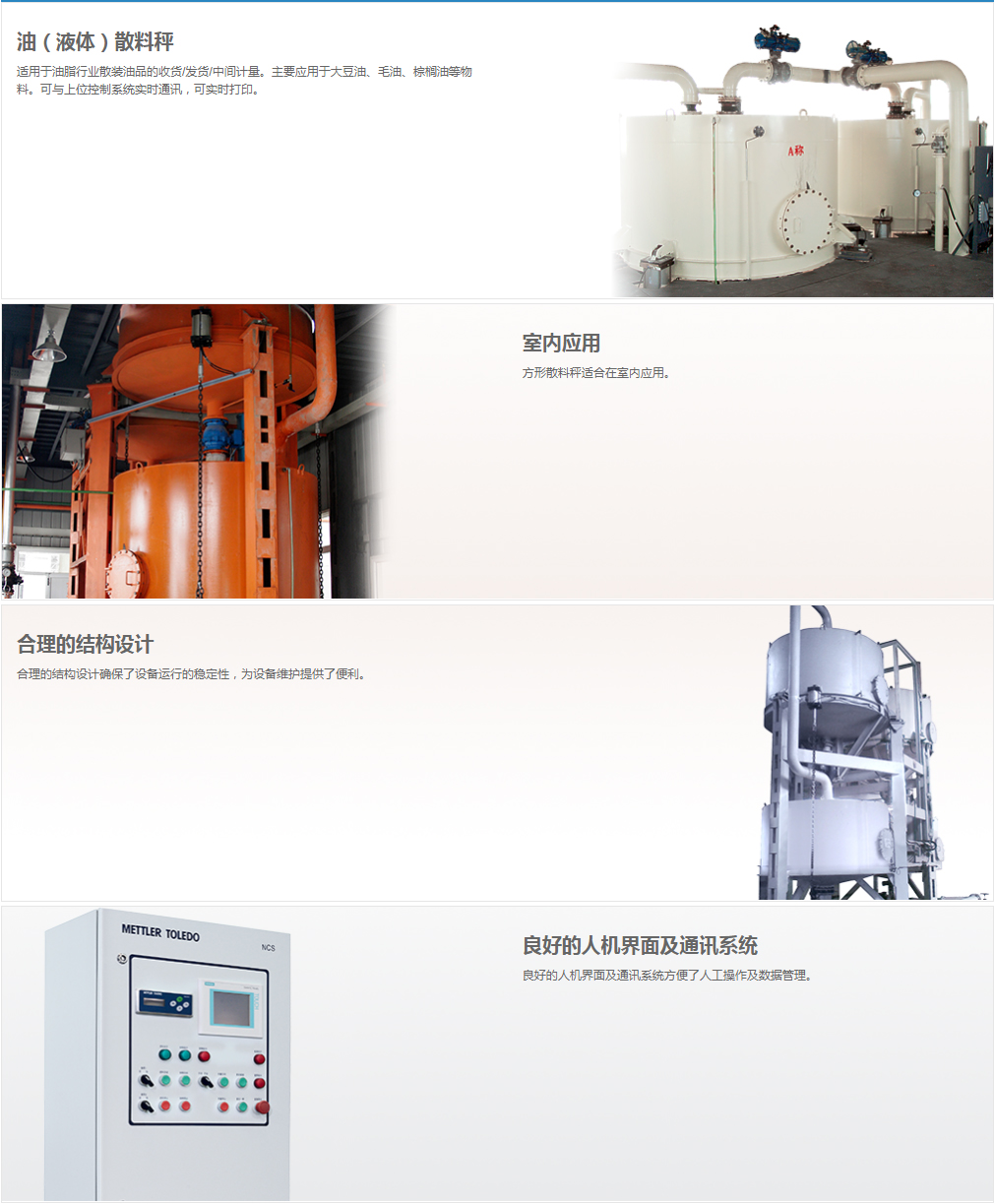 適用于油脂行業(yè)散裝油品的收貨/發(fā)貨/中間計量。主要應(yīng)用于大豆油、毛油、棕櫚油等物料??膳c上位控制系統(tǒng)實時通訊,可實時打印。