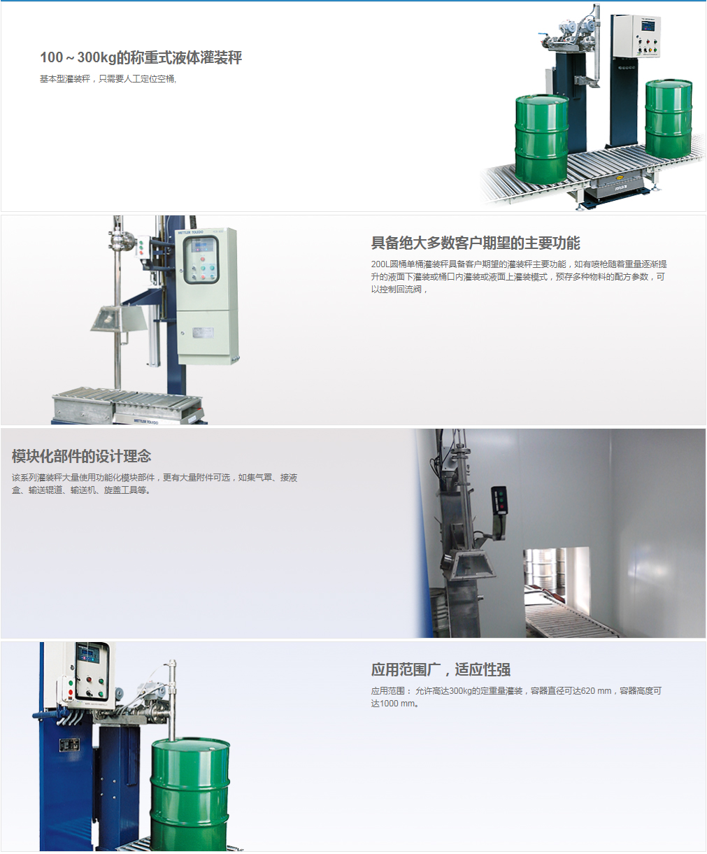 200L圓桶單桶灌裝秤具備客戶期望的灌裝秤主要功能,如有噴槍隨著重量逐漸提升的液面下灌裝或桶口內(nèi)灌裝或液面上灌裝模式,預存多種物料的配方參數(shù),可以控制回流閥