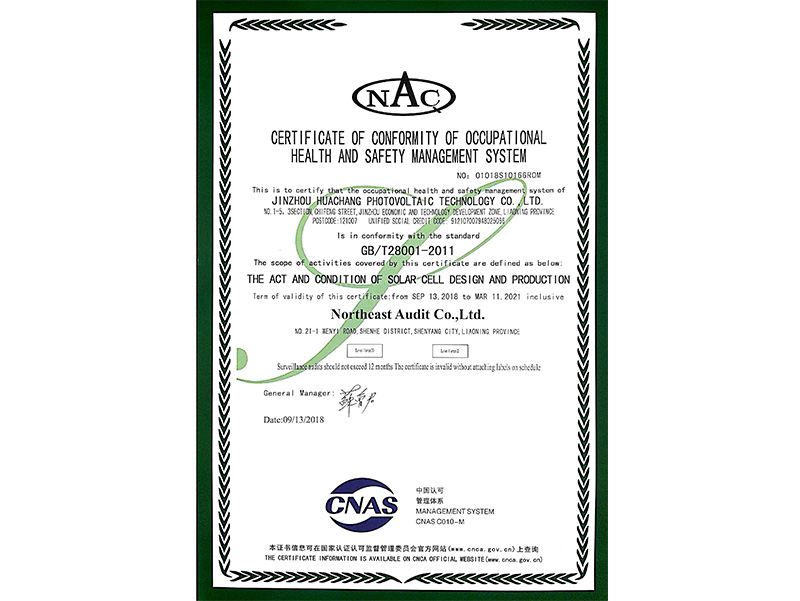 職業(yè)健康安全管理體系認(rèn)証証明書(中國(guó)語(yǔ))