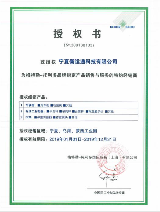 衡運(yùn)通科技是美特雷-托利多品牌寧夏指定產(chǎn)品銷售與服務(wù)的特約經(jīng)銷商