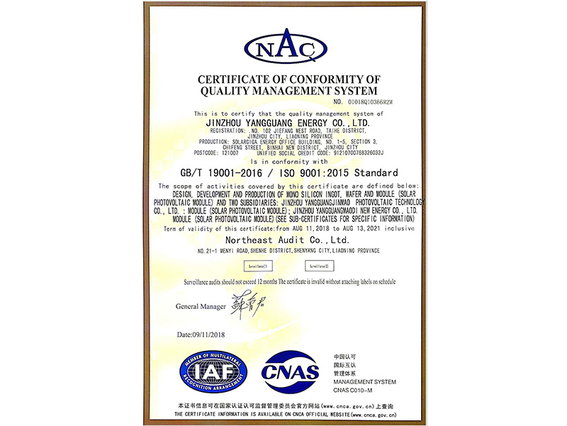 品質(zhì)管理體系認(rèn)證證書(英文)